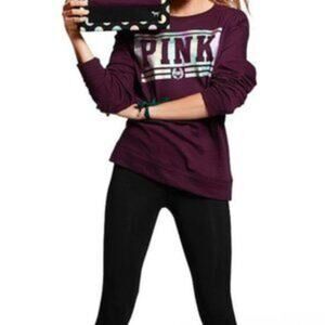 PINK Victoria's Secret Maroon Holographic Foil Logo Sweatshirt Size Small