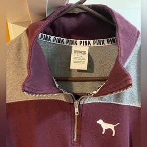 PINK Victoria's Secret Maroon and Gray Zip-Up Sweater