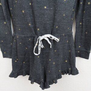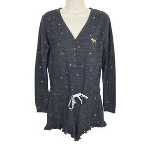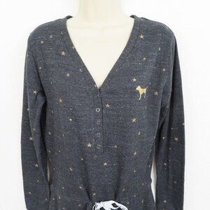 PINK Victorias Secret Medium Gold Ribbed Snap Front Long Sleeve Lounge Romper