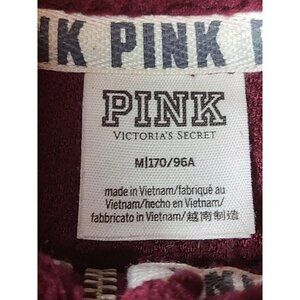 PINK Victoria's Secret Medium Maroon Red Teddy Sherpa Logo Quarter Zip C4