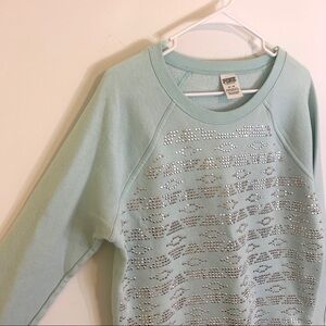 PINK Victoria's Secret Mint Aztec Tribal Sequin Pullover Crewneck Sweats…