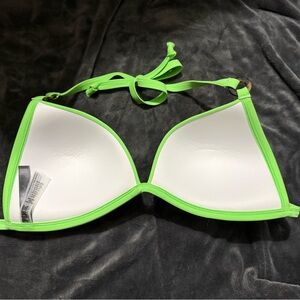 Vibrant neon green bikini top. Halter style with adjustable ties. Perfect for a bold beach look.