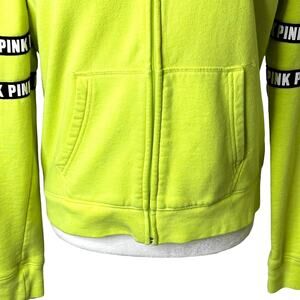 PINK Victoria's Secret Neon Green Hoodie Zip Front Sweatshirt