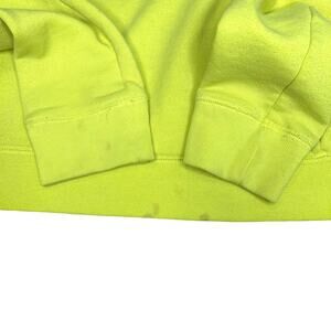 PINK Victoria's Secret Neon Green Hoodie Zip Front Sweatshirt. Sweatshirt has front pockets, zip front and hood. This hoodie has had some major lovin'...there are some light staining/spots here and there. Two stains inside the hood, on the hem and cuffs. One tiny one on the chest. it still has a lot of love to give. Size Medium. Measurements taken laying flat:
