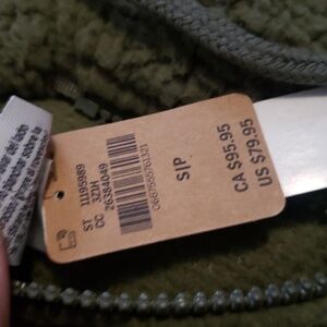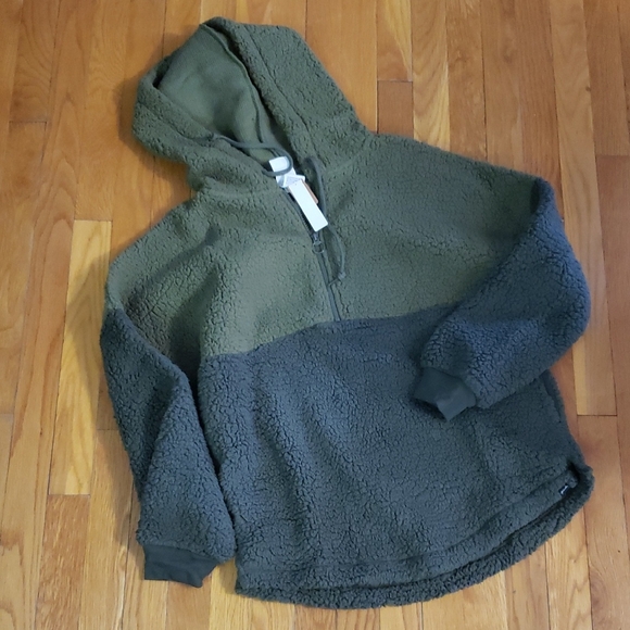 Stylish olive green hoodie. Features a cozy design with a zip closure.