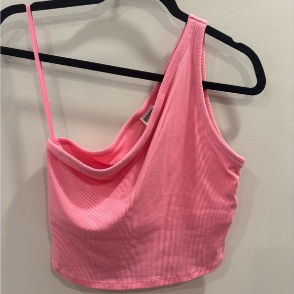 Stylish one-shoulder top. Ribbed texture. Perfect for casual wear.