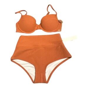 PINK Victoria's Secret Orange Crinkle Push Up Bikini Set, XS (top)Small (bottom)