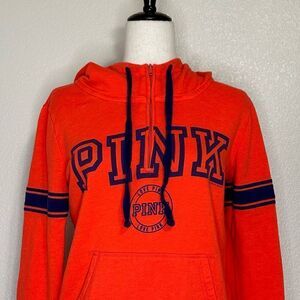 PINK Victoria’s Secret Orange Logo Pullover Hooded Sweatshirt, Sz Small