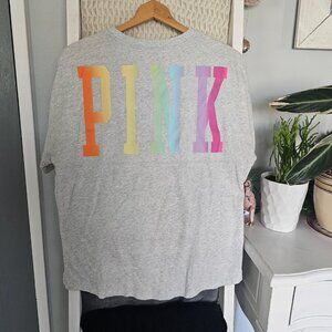 PINK Victoria’s Secret Oversized Tee Sz Small Gray w/ Rainbow Logo