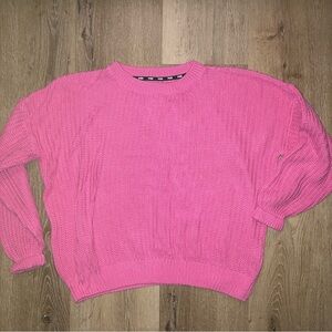 This vibrant pink crew neck sweater features a cozy knitted fabric with a ribbed texture, perfect for a relaxed fit. Its solid color design ensures it stands out in any outfit, making it a versatile addition to your wardrobe.