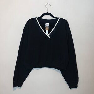 PINK Victoria's Secret Premium Fleece Cropped V-Neck Pullover in Black Size XL