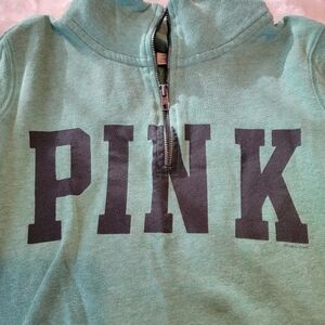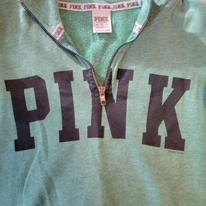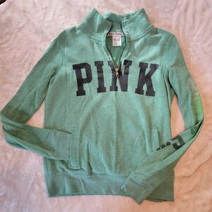 PINK Victoria's Secret Quarter Zip Pullover Green Sweatshirt Size XS