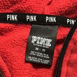 PINK Victoria’s Secret ❤️ RED Zip Up Hoody w/BLACK PUP 🐶 Logo SZ XS