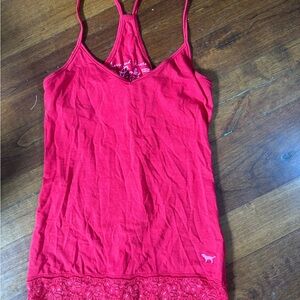 PINK Victoria's Secret Red Camisole with Lace Hem