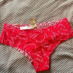 PINK Victoria's Secret Red Lace Script Panties