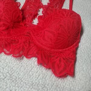 PINK Victoria's Secret Red Racerback Date Lightly Lined Bralette Size XS Lace