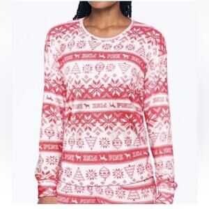 Red and White Christmas Print PINK Victoria’s Secret Sweatshirt