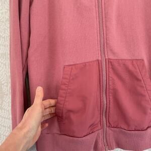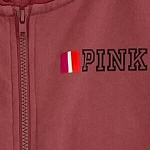 PINK Victoria’s Secret Rose/Mauve/Pink Zippered Hoodie with Satin-Texture Hood and Front Pockets, L