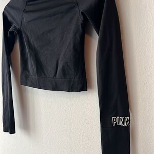 PINK Victoria's Secret Seamless Contour Long Sleeve Crop Top in Black Size XS