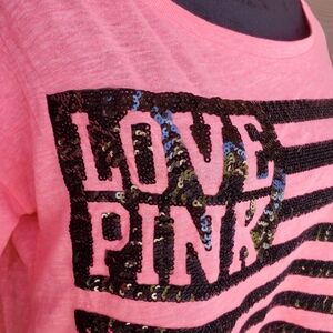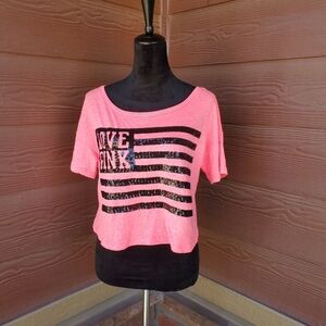 PINK Victoria's Secret Sequin Flag Oversized Neon Cropped Tee T-Shirt XS NWOT