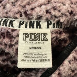 PINK Victorias Secret- Sherpa Pullover 1/4 Zip Front Pocket Purple White- Size M