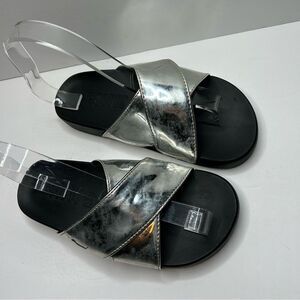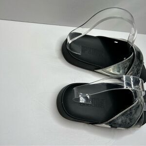 PINK Victoria’s Secret Silver and Black slide on Sandals with Metallic Straps