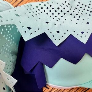 PINK Victorias Secret Size Medium Blue Teal Bikini Swimsuit Top Geometric Ruffle