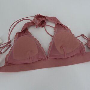 PINK Victorias Secret Small Lace Bralette V Neck Floral Flower Bra Strappy NEW