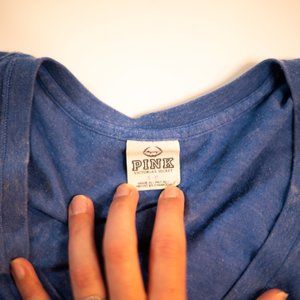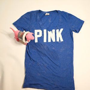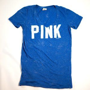 PINK Victoria's Secret Small V-Neck Sky Blue & White Short Sleeve T-Shirt