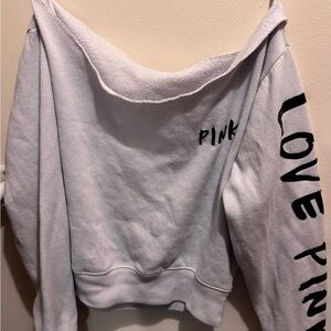 PINK Victoria's Secret Soft Light Blue off the shoulder sweatshirt