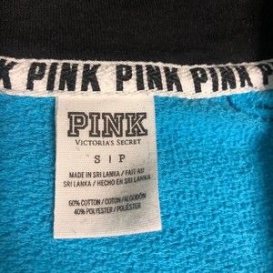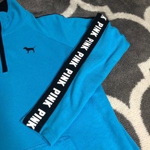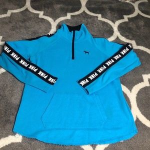 PINK Victorias Secret Sweatshirt Women Small Blue Oversized Quarter Zip Pullover