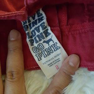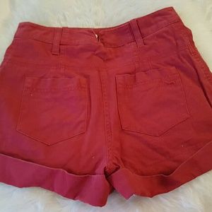 #SummerReady used only 2-3 times....LIKE NEW! TRENDY PINK Victoria's Secret DEEP RED High-waisted Shorts SIZE 2 with slit pockets, 3 button detail, back slit at top back, and cuffed hem, with 2 back pockets. Inseam is 2 inches. Waist is 26 inches. SUPER CUTE FIT!!!! NO TRADES!!! PRICE IS FIRM!!!