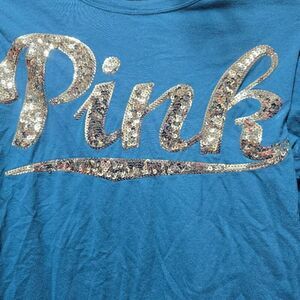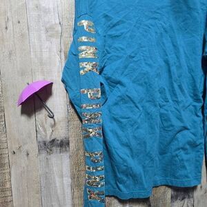 PINK Victoria's Secret Teal and Gold Sequin Bling Tee
