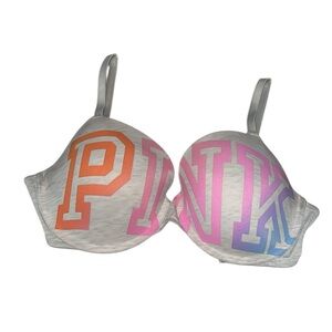 Chic gray bra featuring pink logo. Underwire Lightly lined This was only worn a few times Offers are open Or bundle with another VS bra from my closet for the best deal !