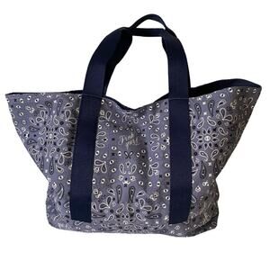 Keywords: PINK Victoria's Secret, Tote Bag, Blue Bandana Print, Large Tote, Travel Bag, Beach Bag, Canvas Tote, Victoria's Secret Bag, VS PINK, Navy Blue Straps, Casual Tote, Everyday Bag