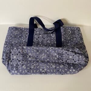 PINK Victoria's Secret Tote Bag Blue Bandana Print Large Travel Beach Carry All