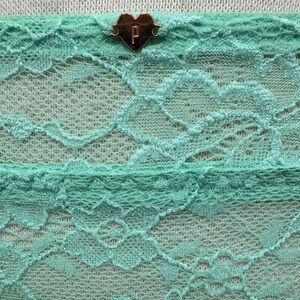 Two Toned Mint Soft Lace Bralette with a Sweetheart neckline with gathered detail with a small “P” heart charm on back.