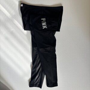 PINK Victoria’s Secret Ultimate Black Faux Leather Panel Leggings – Size M