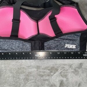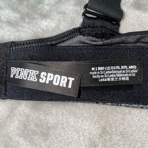 Keywords: PINK sports bra, Victoria Secret sports bra, lightly lined sports bra, grey black sports bra, women activewear bra, gym sports bra, athleisure bra, medium sports bra, workout bra