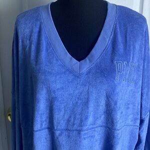 PINK Victoria’s Secret Varsity Terry Periwinkle Blue V-neck Sweatshirt sz L NWT