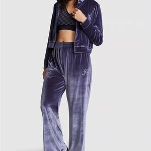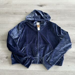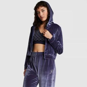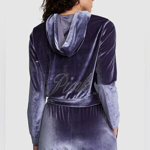 PINK Victoria’s Secret Velour Shine Logo Full-Zip Crop Hoodie Blue L NWT IN PKG