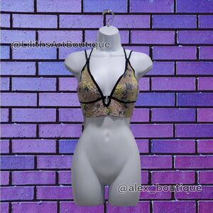 ☆Strappy back with gold tone ring hardware with non-adjustable straps.