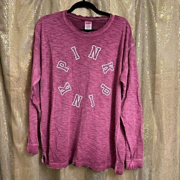 PINK Victorias Secret Washed Berry Distressed Long Sleeve T Shirt Large