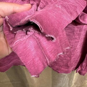Like brand new, no flaws or signs of wear. There is intentional distressing around the neck, bottom hem and edges of the sleeves. Super cute style and pretty unique. Size large. The color is called Washed Berry and is like a deep marled Pink color, Really cute. 100% Cotton.