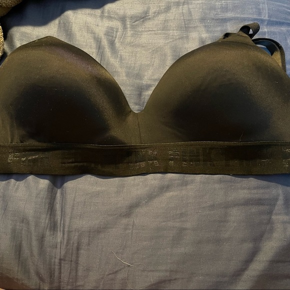 This bra is very stretchy and is in good shape, I only wore a couple of times. It is very lightweight but is still very supportive and comfortable!