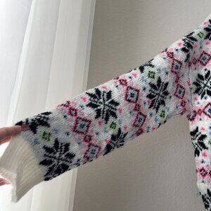 PINK Victoria's Secret White Snowflake Holiday V-Neck Sweater Fairisle Size M