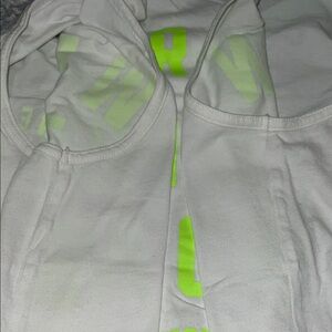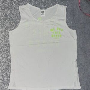 White tank top with vibrant neon green text 'We Run This Beach'. Very clean and new condition size Medium , send your offers if you bundle get better one thank you