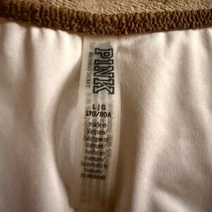 Chic PINK Victoria's Secret top. White fabric with brown trim. Perfect for casual wear. Top and bottoms have never been worn
