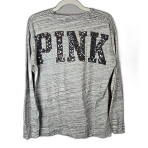 PINK Victoria's Secret Women's Bling Sequin Gray Long Sleeve Top Size Small