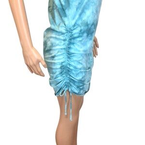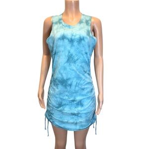 Introducing a stunning PINK Victorias Secret Women's Sleeveless Ruched Side Tank Dress in size blue, perfect for travel, party/cocktail, or casual occasions. Made with a comfortable cotton blend material, this short dress features a tie dye pattern, round neckline, and pullover closure.